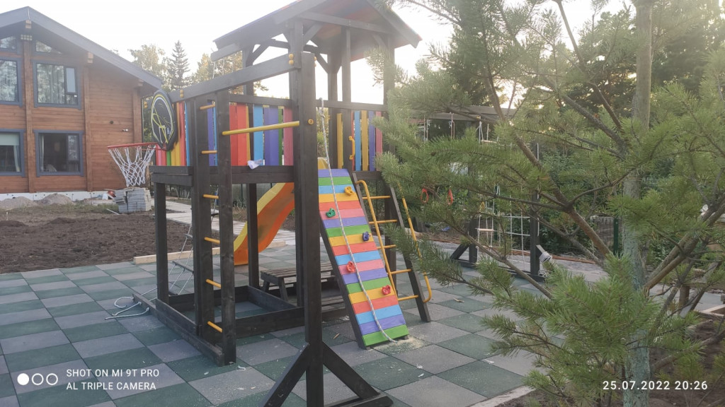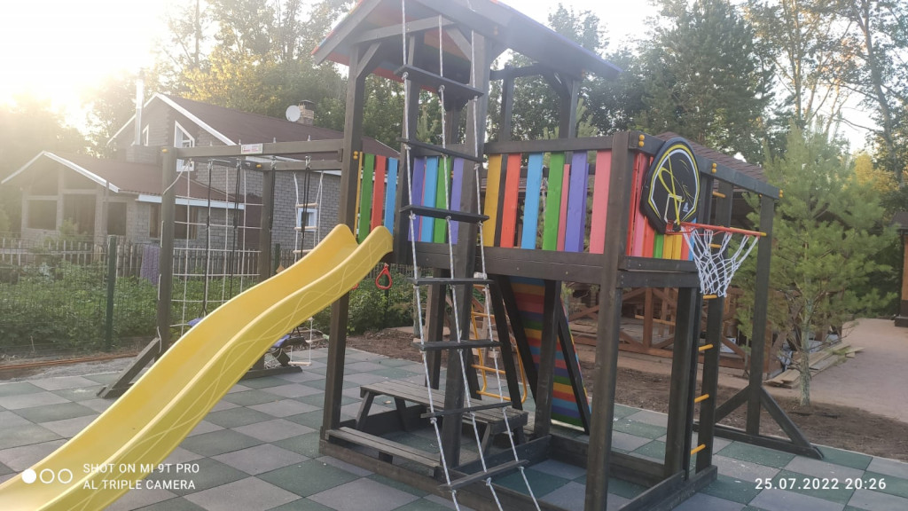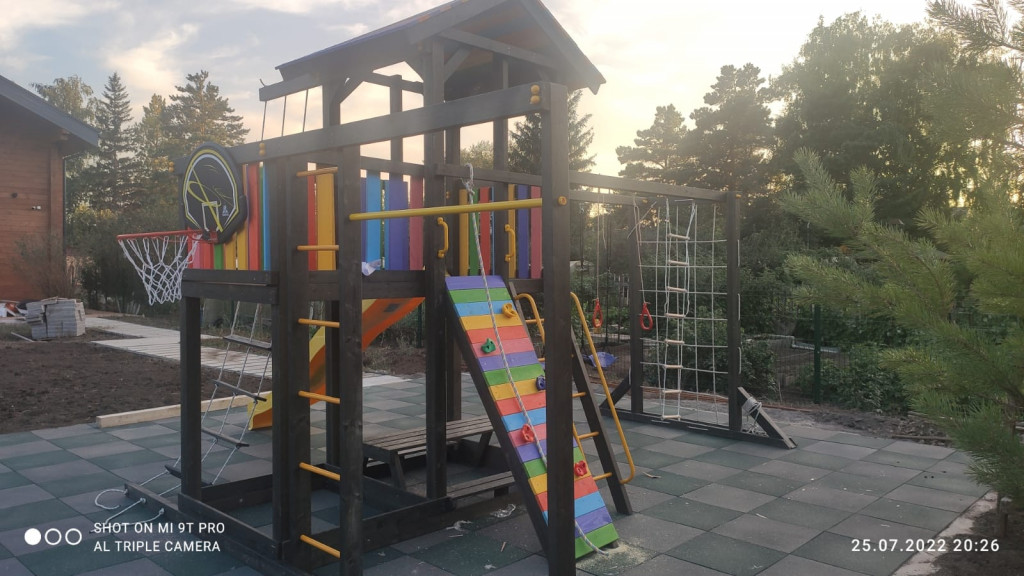 Была необходима площадка для мальчиков 5 и 13 лет. Место установки – дачный участок. Менеджер подобрал несколько вариантов. Заказчик согласовал модель Джерси 3. Эта площадка дополнена горкой, скалодромом, баскетбольным кольцом и другими элементами, которые нравятся детям разного возраста. Сооружение имеет сертификат соответствия.
