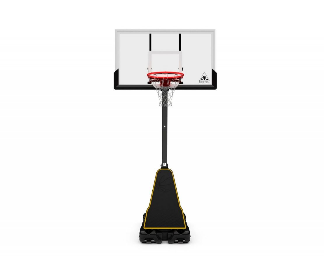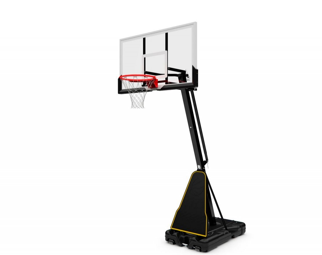 Портативная баскетбольная стойка совмещает в себе мобильность и обеспечивает отскок мяча, как на профессиональной площадке. Благодаря усиленной конструкции удалось добиться увеличенного вылета щита, при сохранении компактности размещения. Он регулируется в диапазоне от 230 до 305 см, имеет защитное покрытие Poly Pade в нижней части. В основание стойки (объем 114,7 л) необходимо залить воду или засыпать песок в качестве утяжелителя.