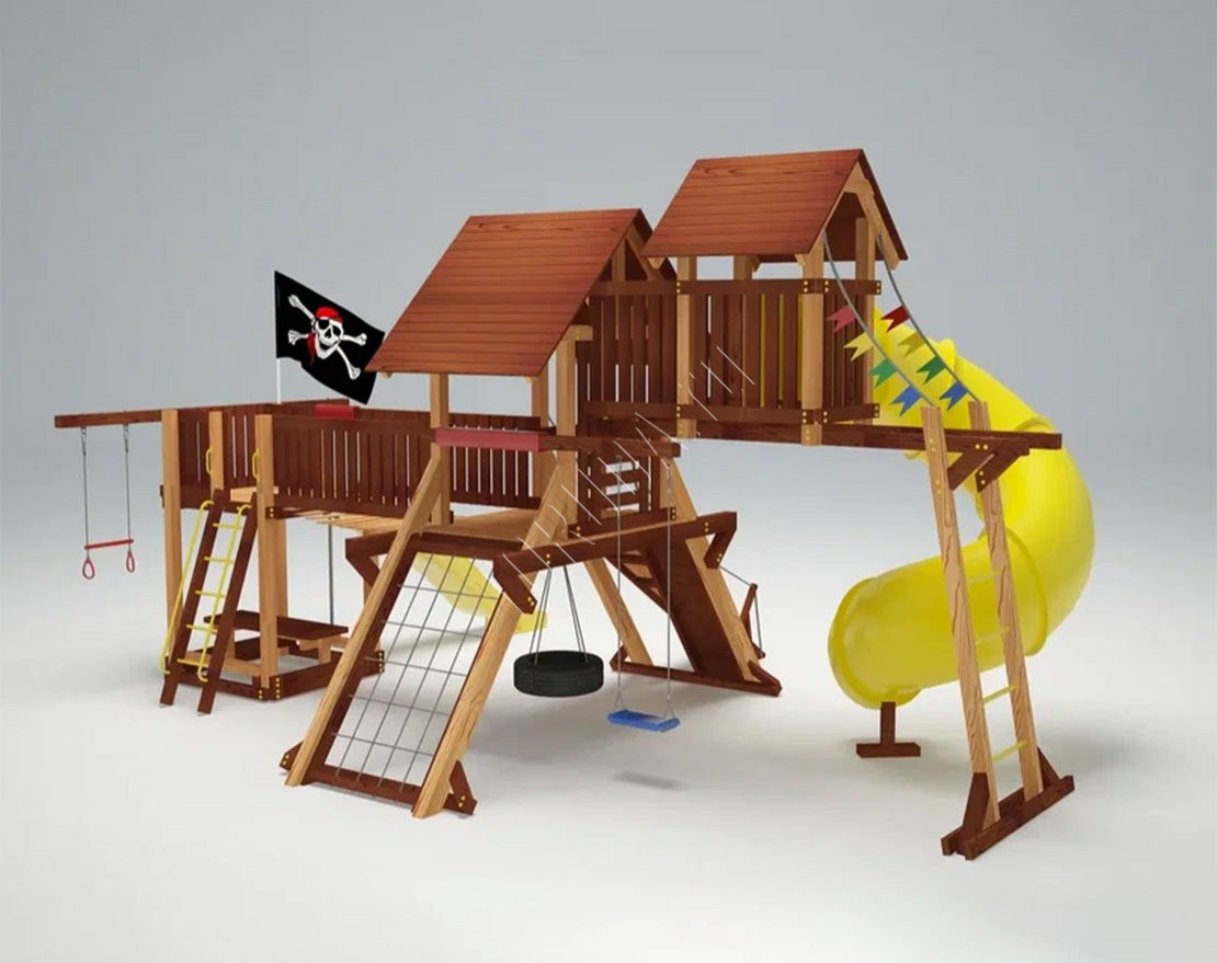 Площадка Галиот 14 обладает довольно широким функционалом (который по желанию можно легко расширить). А на качелях могут кататься даже родители! Детская площадка предназначена для дачи, коттеджа.