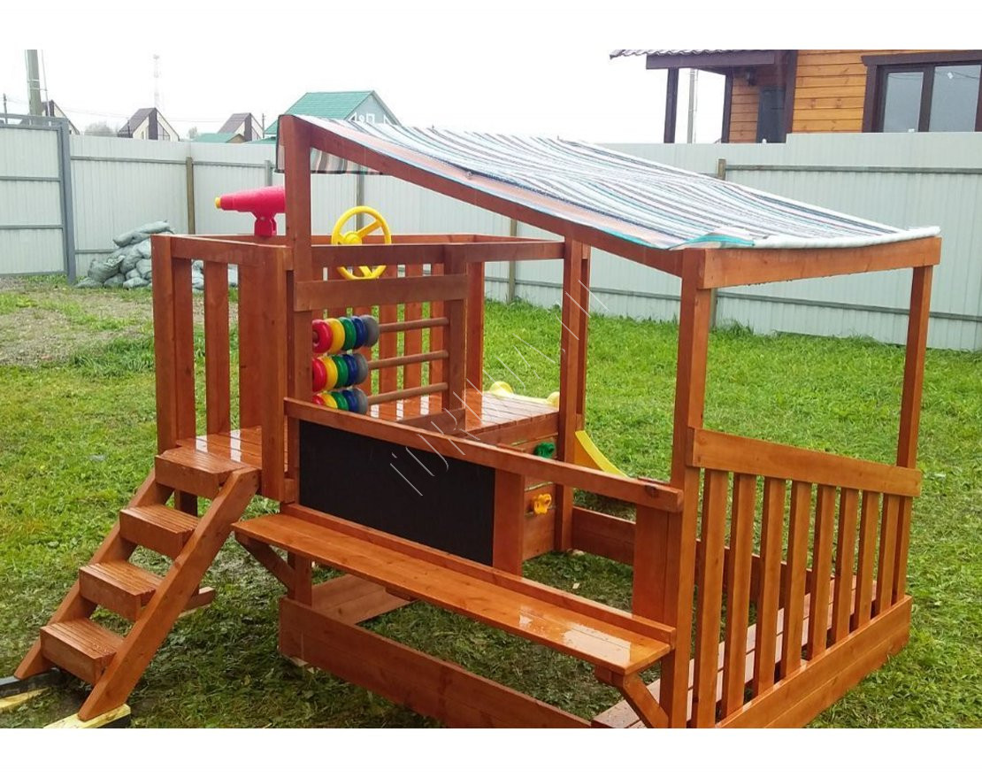 Игровой домик с крышей - защищает от солнца и дождя, создаёт уютную атмосферу для игр и отдыха.