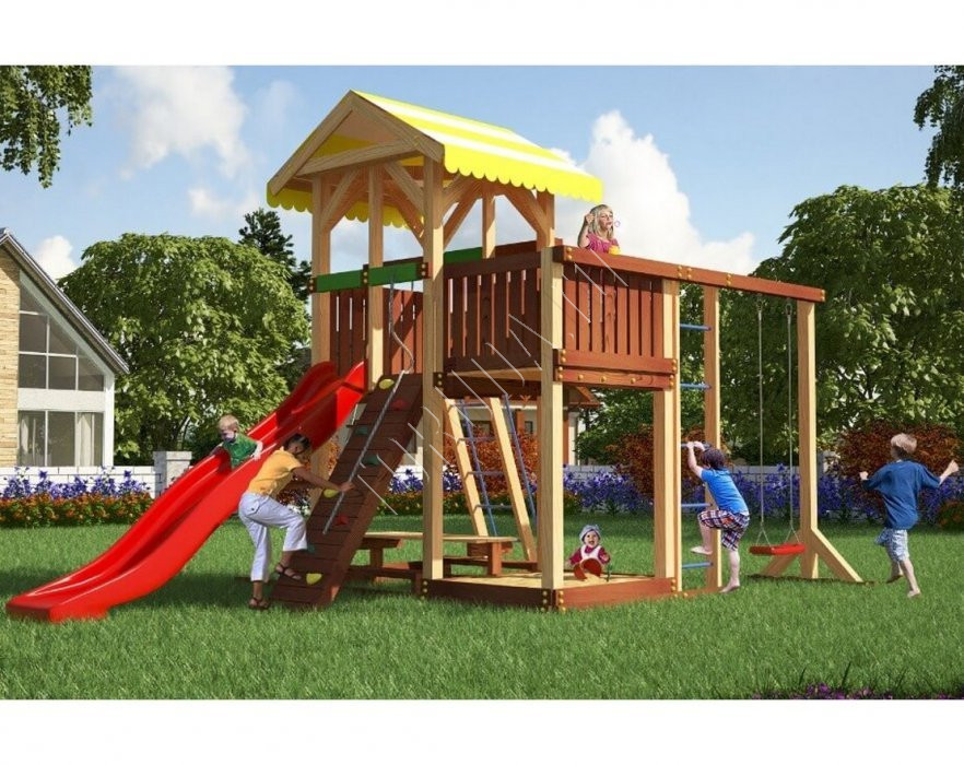 Площадка Парус 5 обладает довольно широким функционалом (который по желанию можно легко расширить). Детская площадка предназначена для дачи, коттеджа.