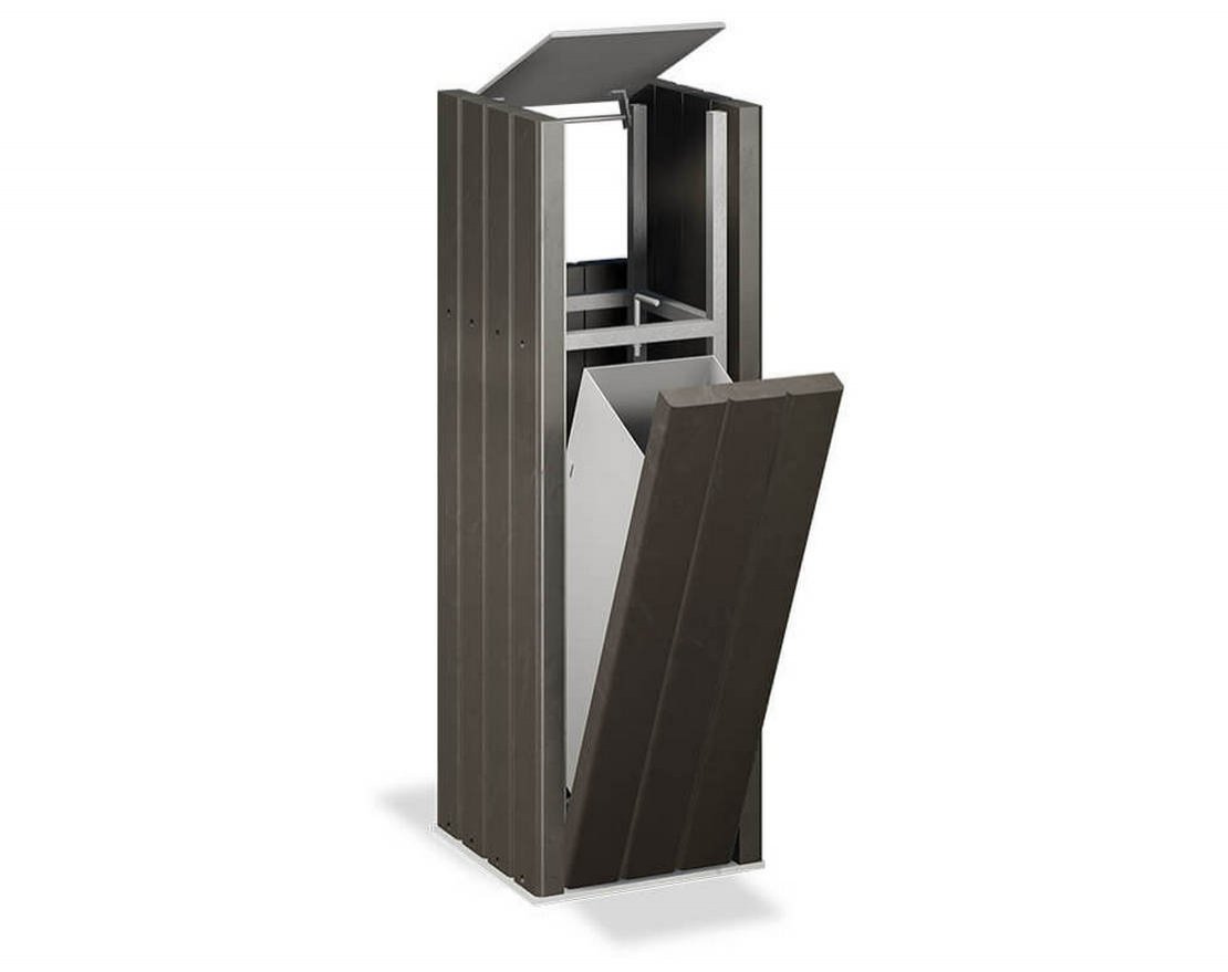 Практичная уличная урна с защитой в виде навеса сверху от попадания осадков — залог чистоты городского ландшафта. Является элементом уличного декора и хорошо вписывается в ландшафт сада или парка.