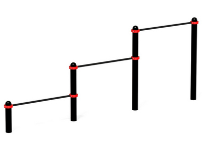 Каскад перекладин для подтягиваний и отжиманий состоит из 4-х вертикальных столбов и трех горизонтальных перекладин. Главная особенность уличного турника – это использование в его изготовлении материалов, способных выдерживать агрессивное воздействие окружающей среды. Предлагаемая здесь конструкция изготавливается из круглых труб с толстыми стенками, которые обладают устойчивостью к любым нагрузкам и могут успешно противостоять коррозии, благодаря покрытию из полимеризованных порошковых красок.